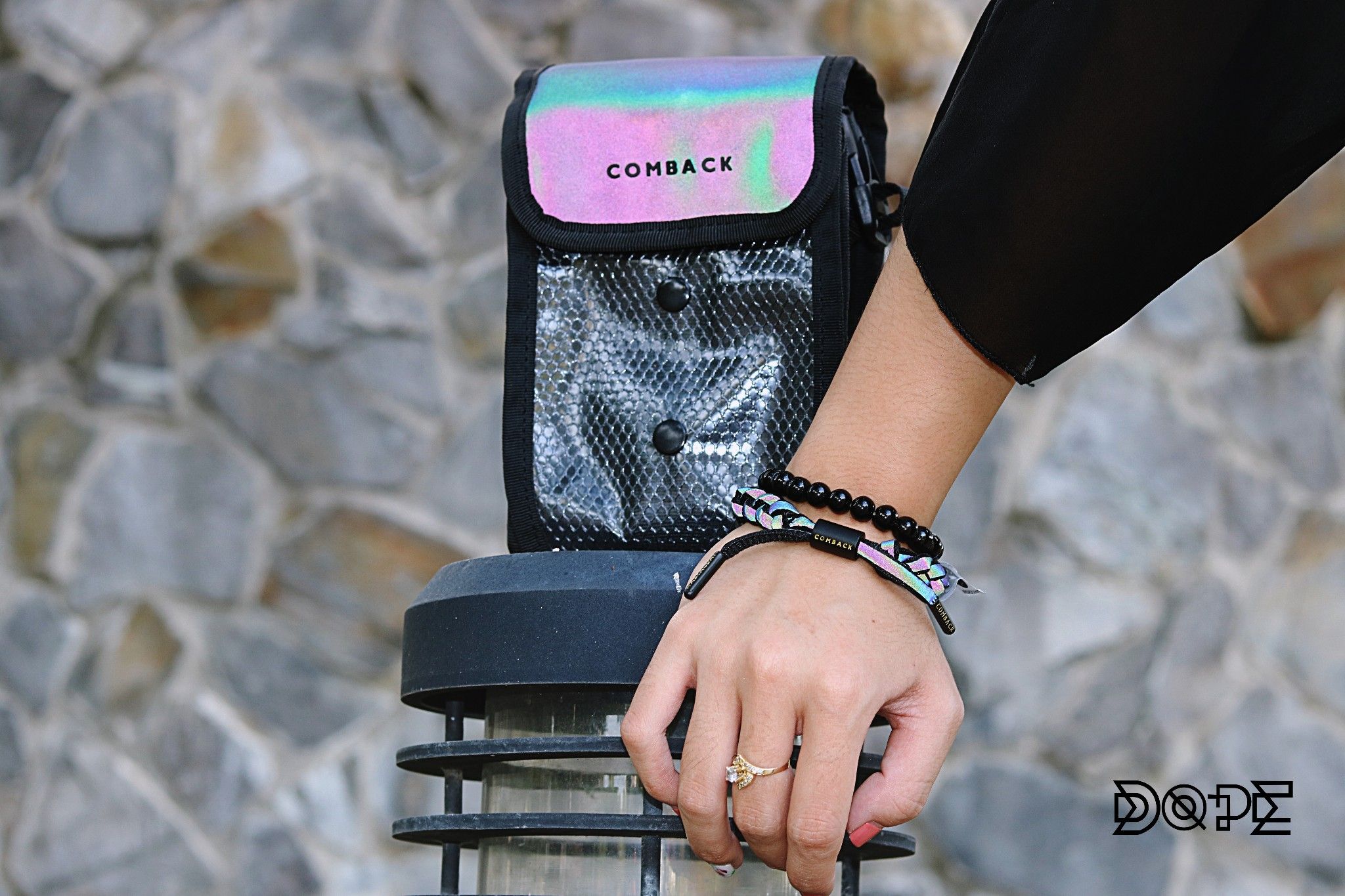 Một Set RASTACLAT COMBACK sẽ gồm chiếc túi đeo chéo phản quang 7 màu kèm theo một chiếc vòng RASTACLAT COMBACK cũng có chức năng phản quang 7 màu cực long lanh.