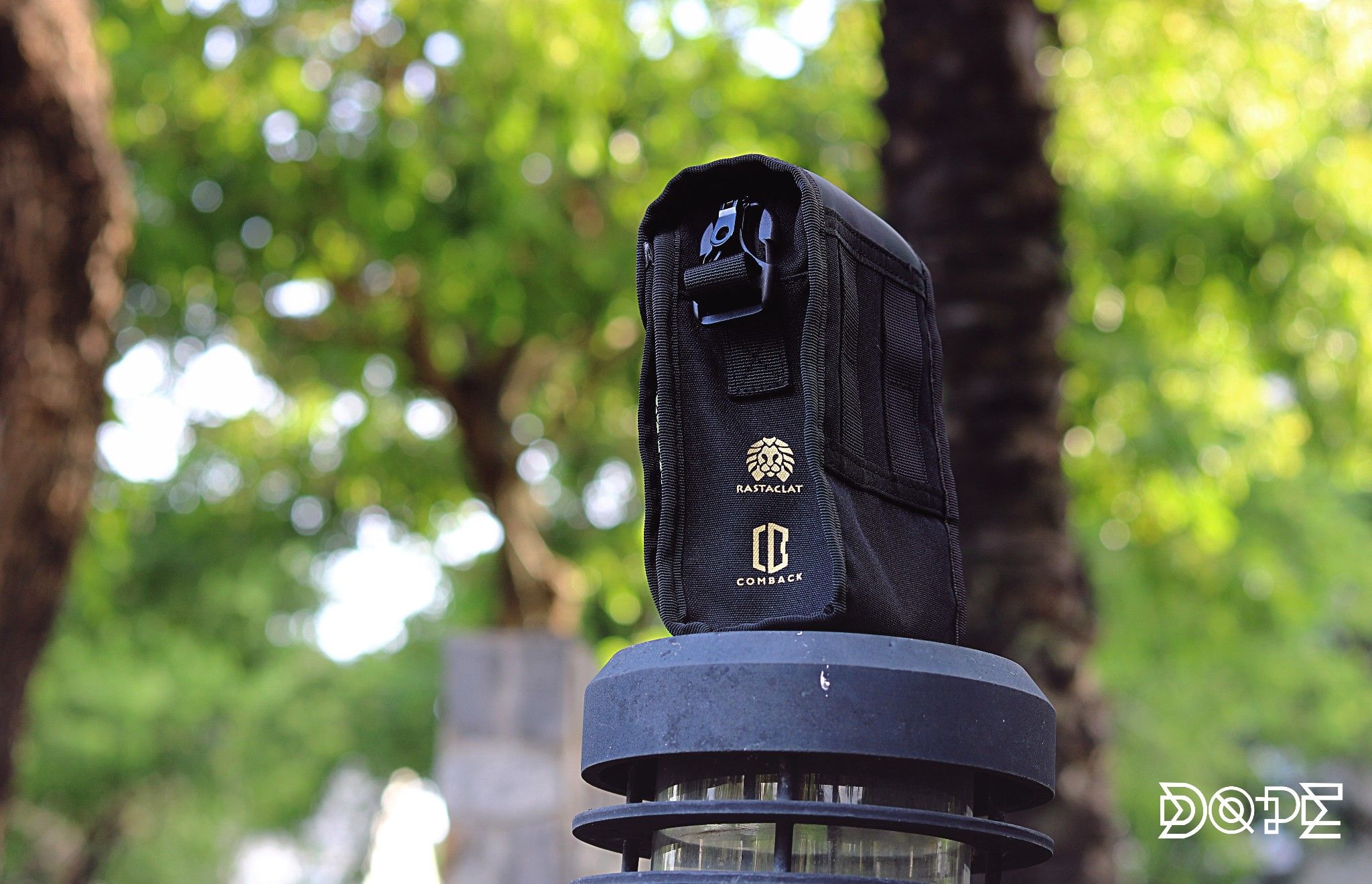 Hình: Cạnh bên của RASTACLAT x COMBACK BAG với logo màu Gold tạo điểm nhấn cực kì bắt mắt