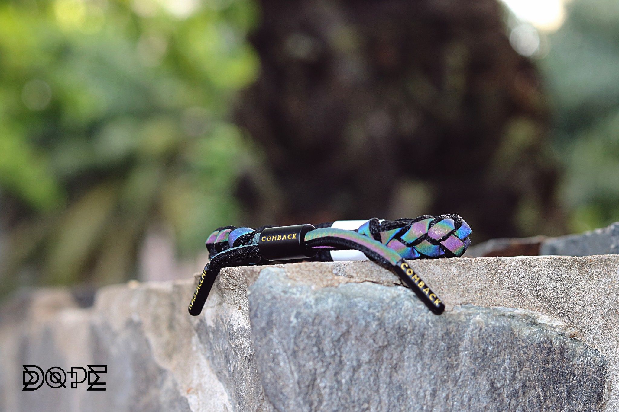 Ở phần Barrel và 1 đầu dây Aglet của vòng, logo COMBACK được khắc hoạ sắc nét với phối màu Gold tạo điểm nhấn trên nền All Black.