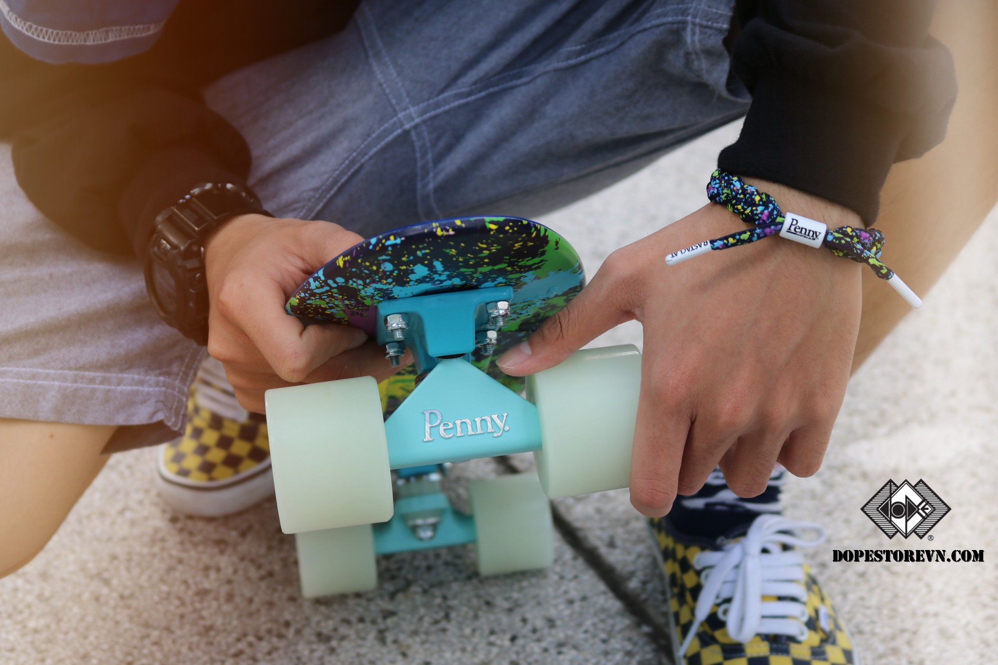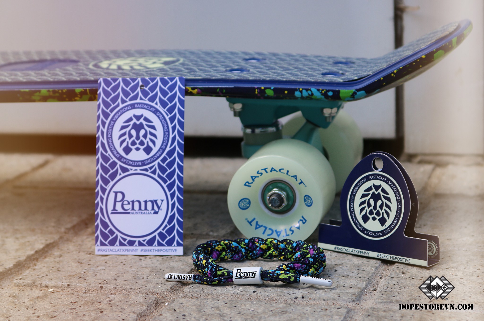 Nắm bắt tâm lý người chơi, RASTACLAT đã hợp tác cùng một thương hiệu Skateboard rất nổi tiếng ở Úc, Penny Australia để cho ra một bộ combo siêu phẩm mang tên Rastaclat x Penny Splatter Glow In Dark.