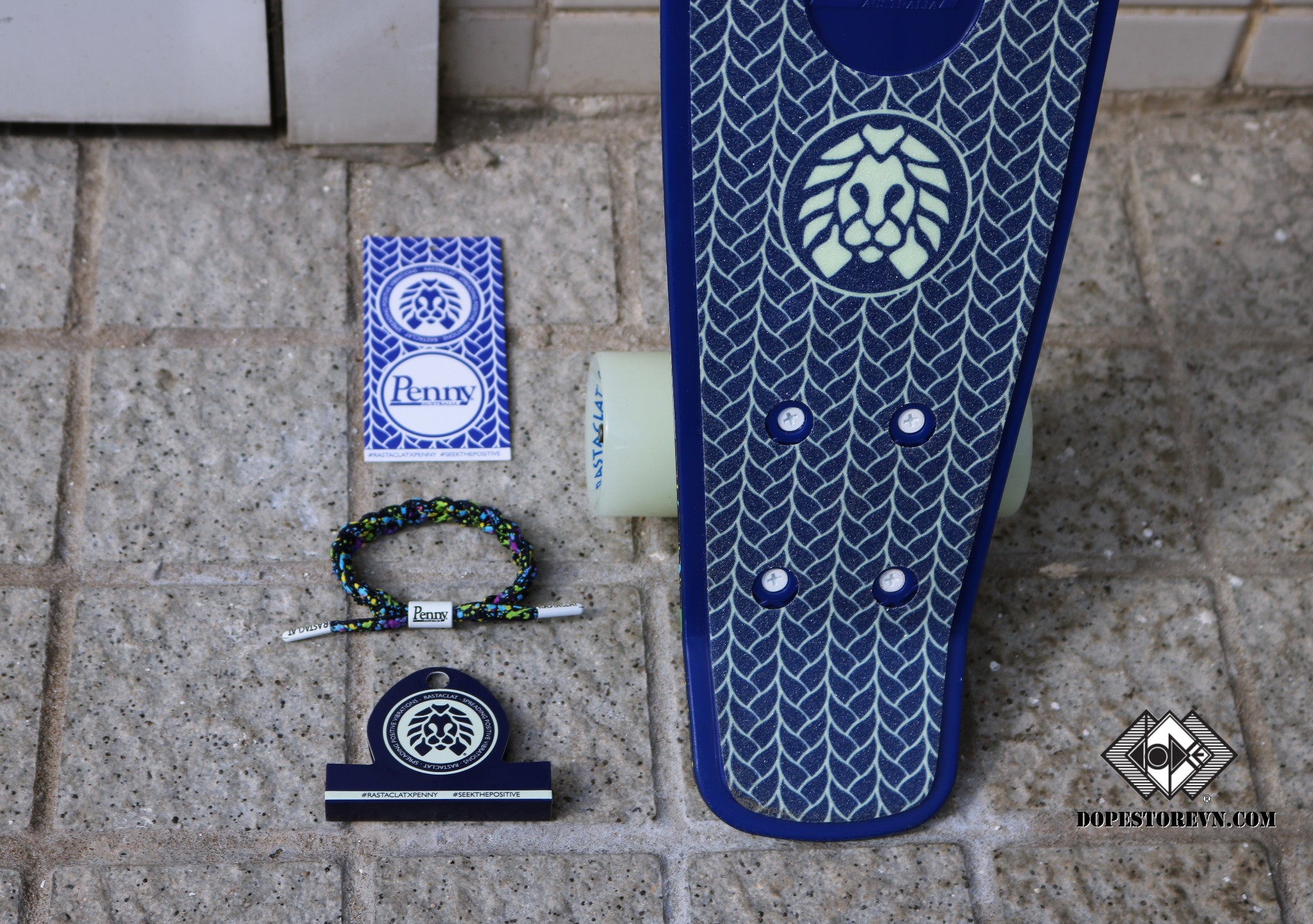 Nói sơ bộ một chút về sản phẩm này, đây là combo gồm 1 ván trượt của Penny Australia và một vòng Rastaclat. Bên cạnh đó, đính kèm cùng là quyển sổ nhỏ để hướng dẫn sử dụng cũng như chính sách bảo hành sản phẩm. Giá bán của combo này tại thị trường Mỹ và Úc là $119.99.