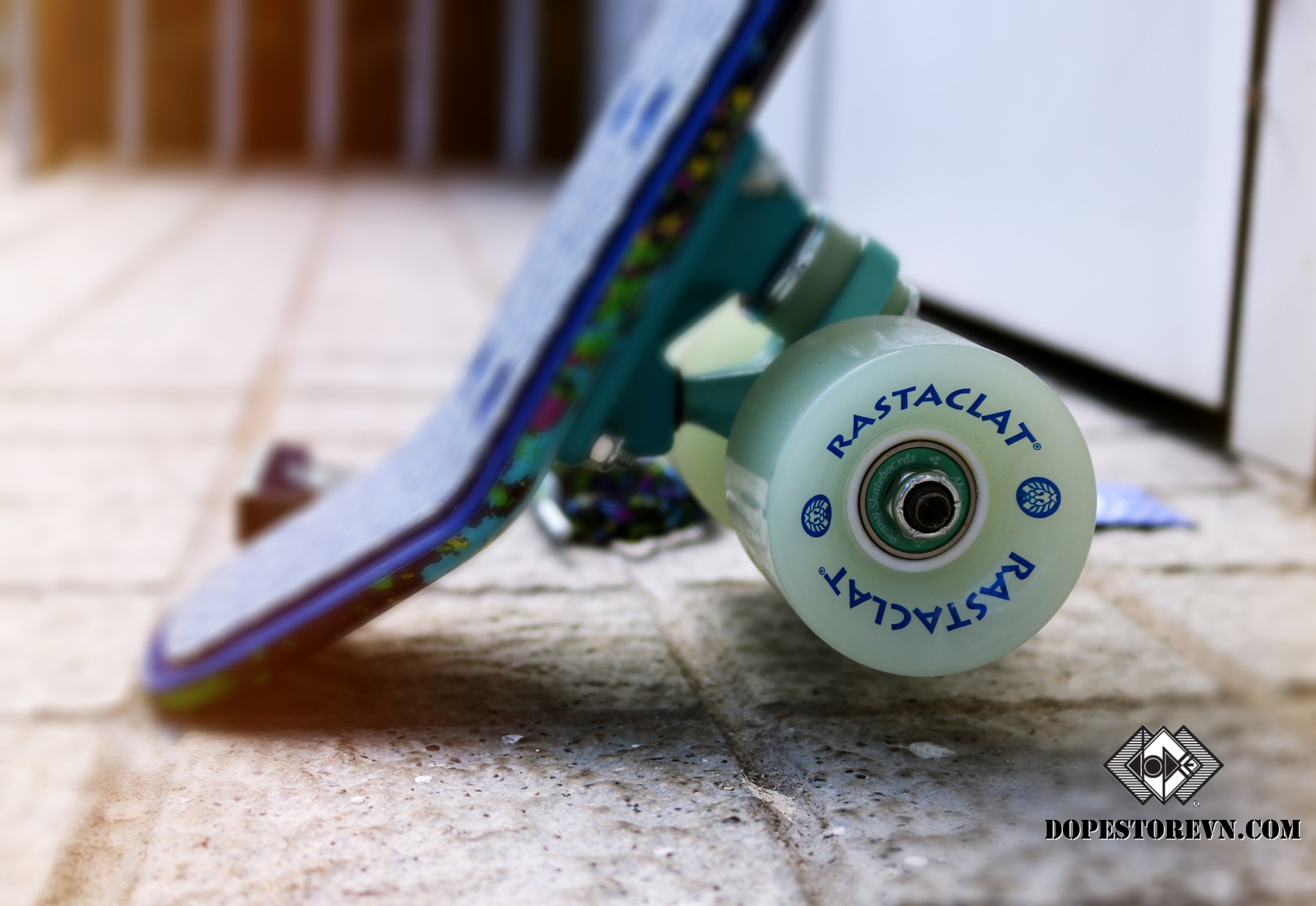 Ở phần bánh của ván trượt, đó là logo sư tử cùng dòng chữ Rastaclat. Bánh xe được làm bằng chất liệu Glow In Dark nên khi chơi trong tối thì nó có thể phát sáng cực kì "kool".